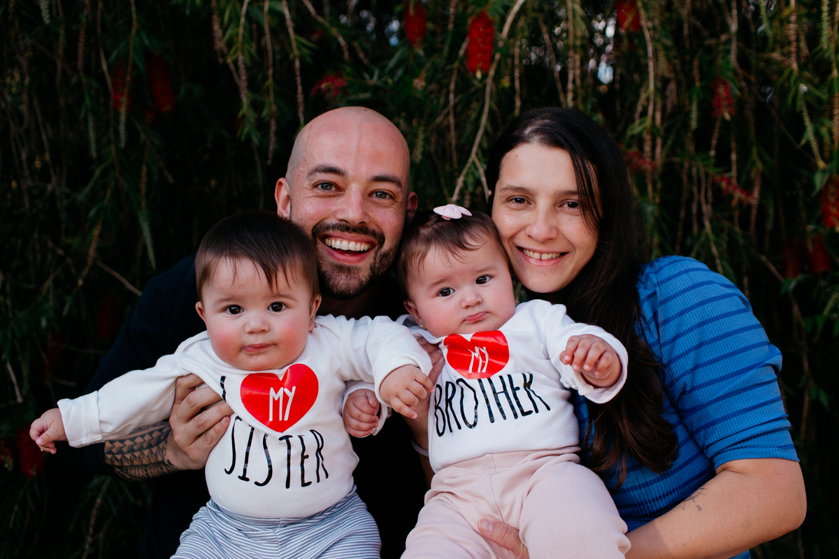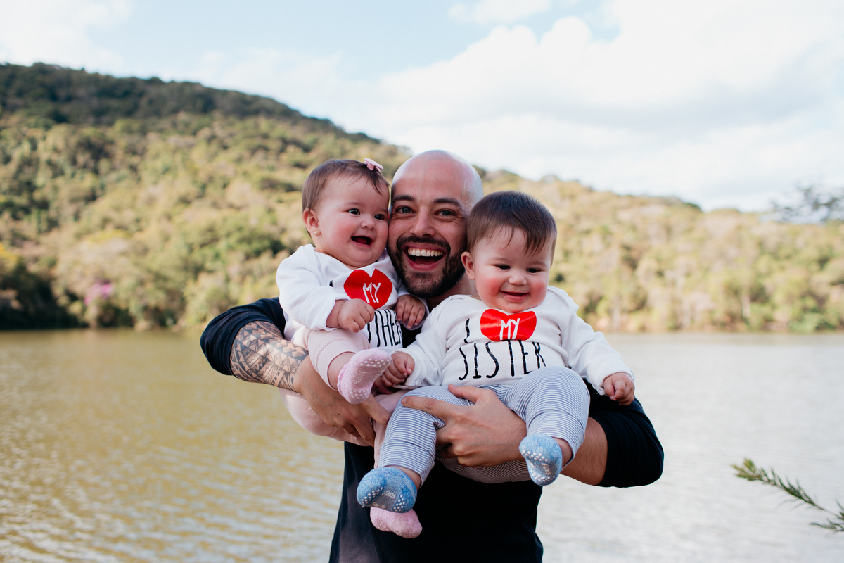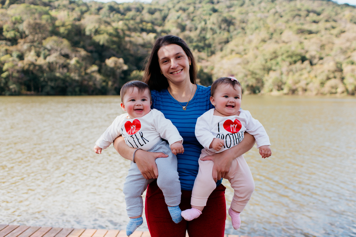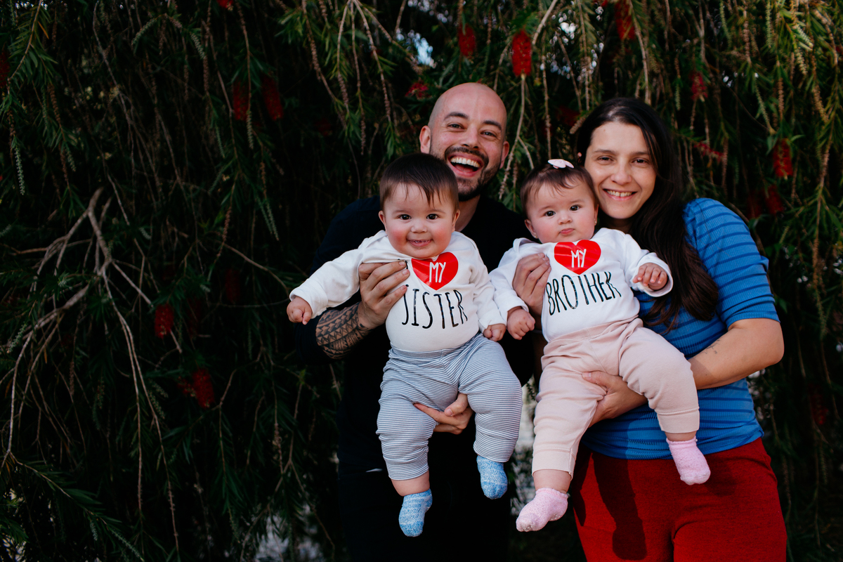 Fotos em família dos gêmeos Luna e Luca, em Atibaia, com 8 meses 🌿